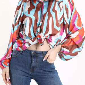 Oversized Linnen blouse met lange mouwen – krag en V-hals – voor steek zakken – kleur Terracotta