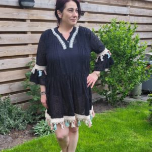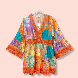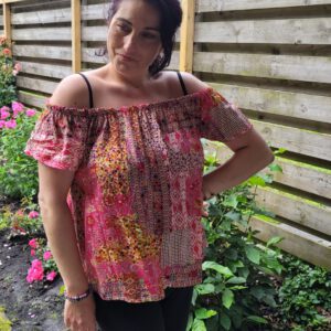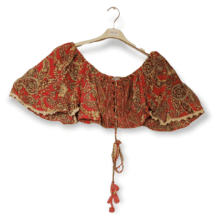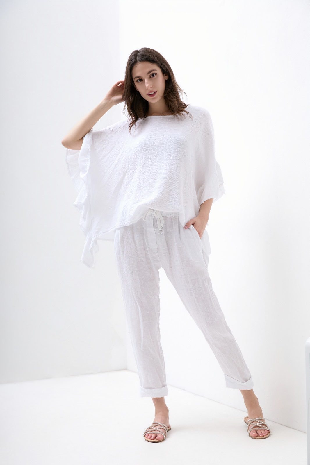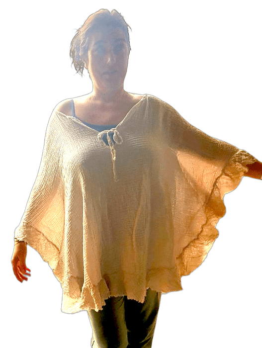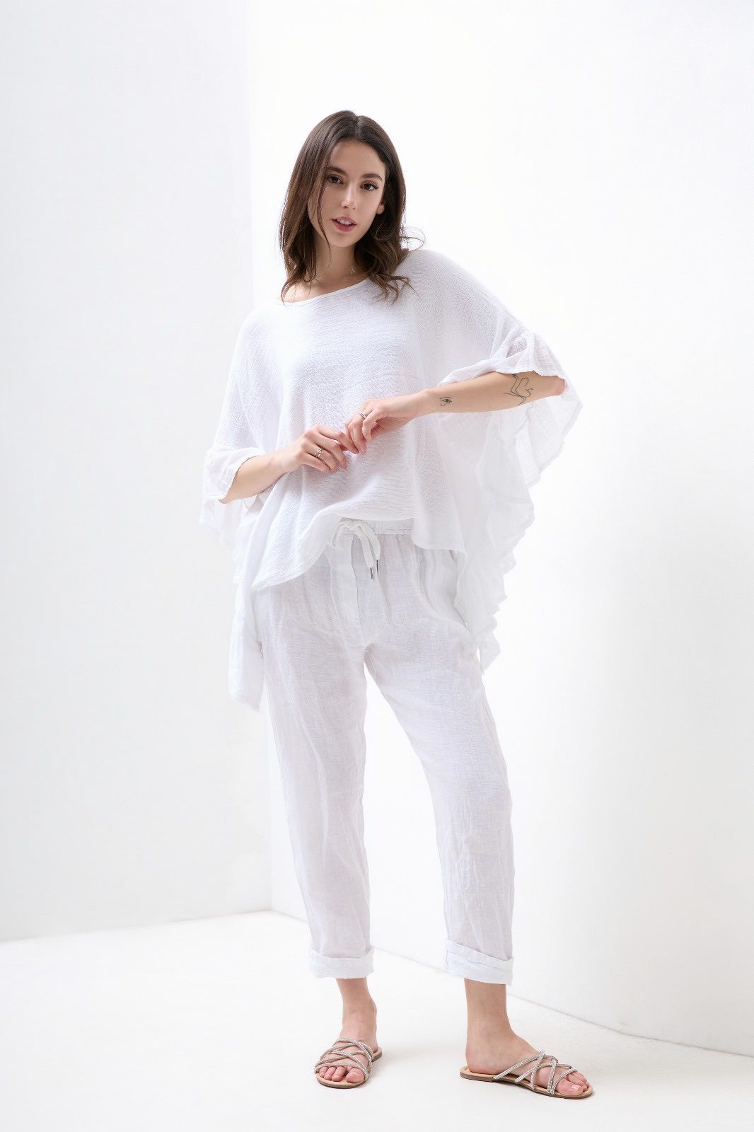 Linnen top cropped – poncho – met vlinder mouwen – in kleur WIT – grote maten – one size