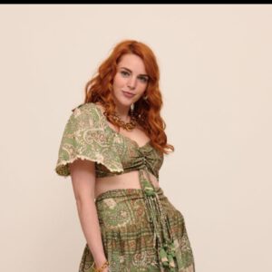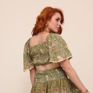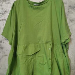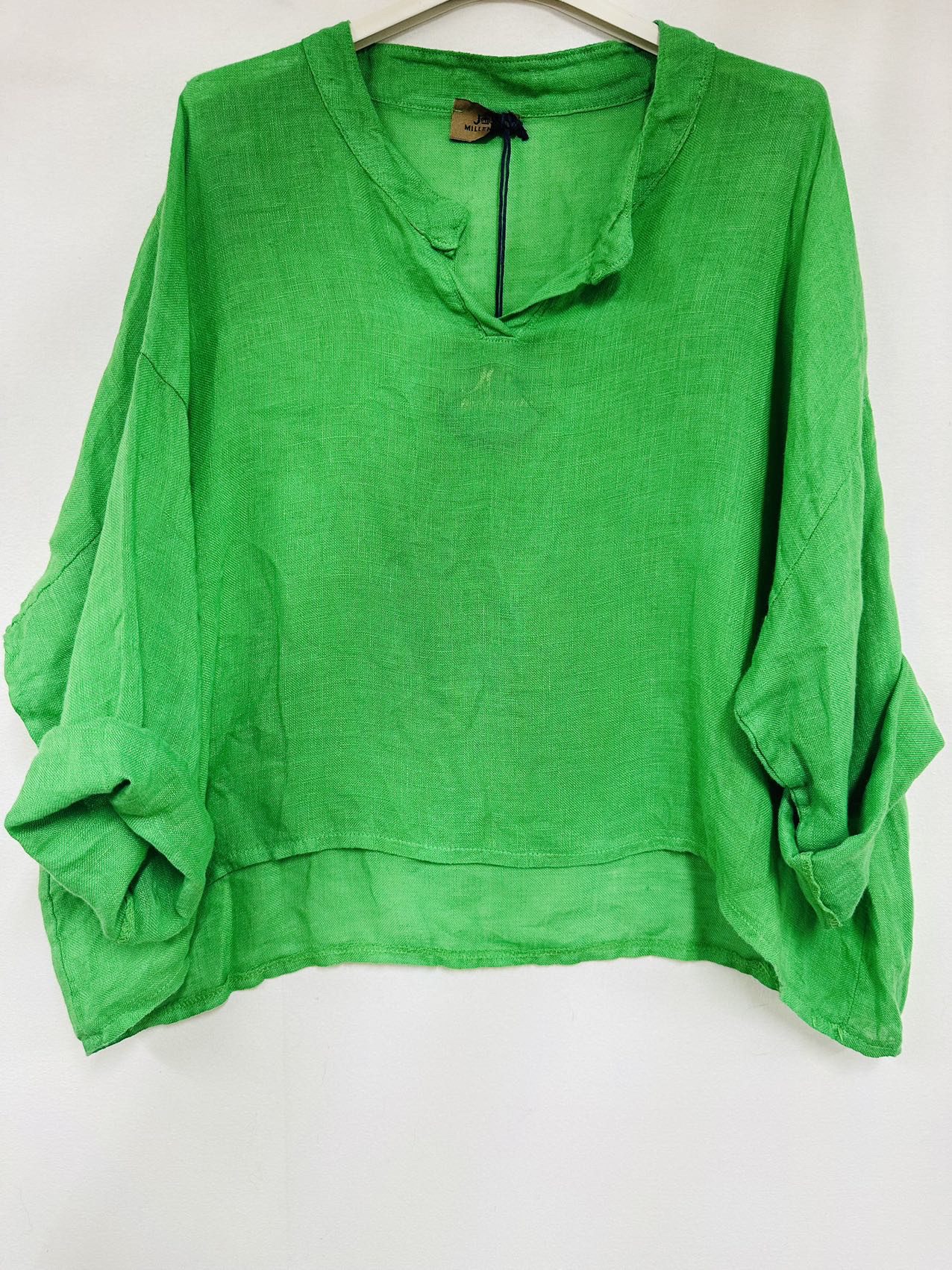 Mooi linnen korte – cropped top – v-hals hals – kraagje – raglan mouwen kleur GRAS GROEN – one size