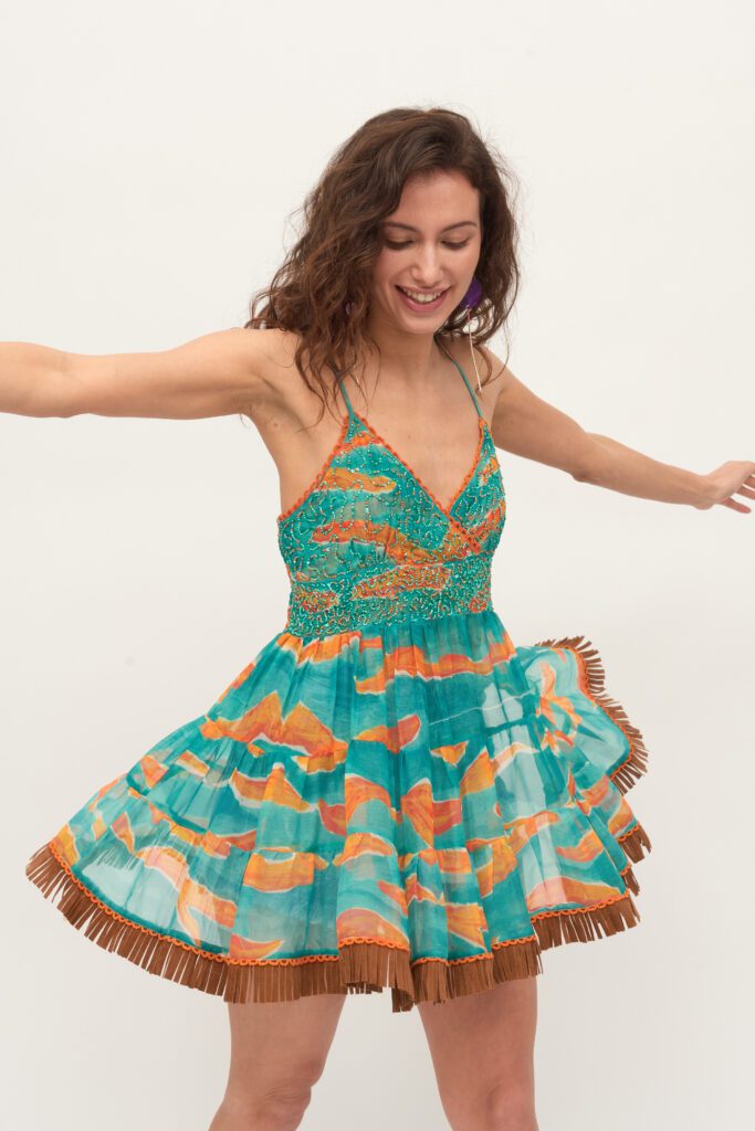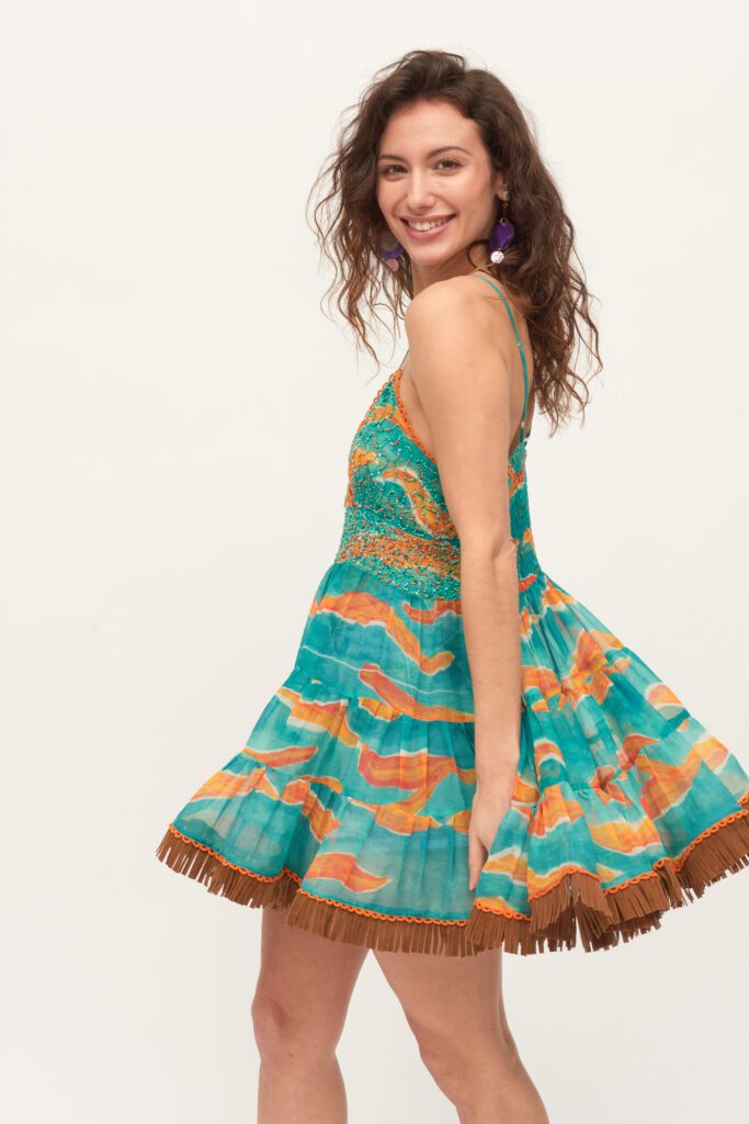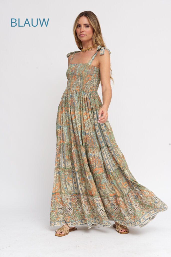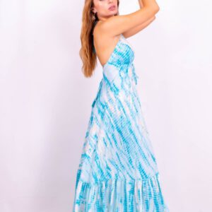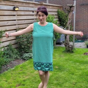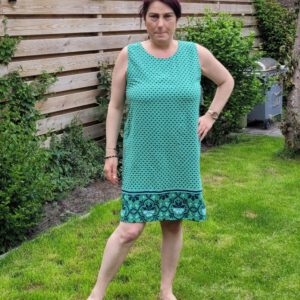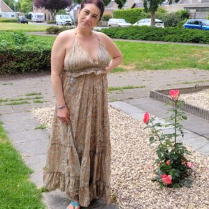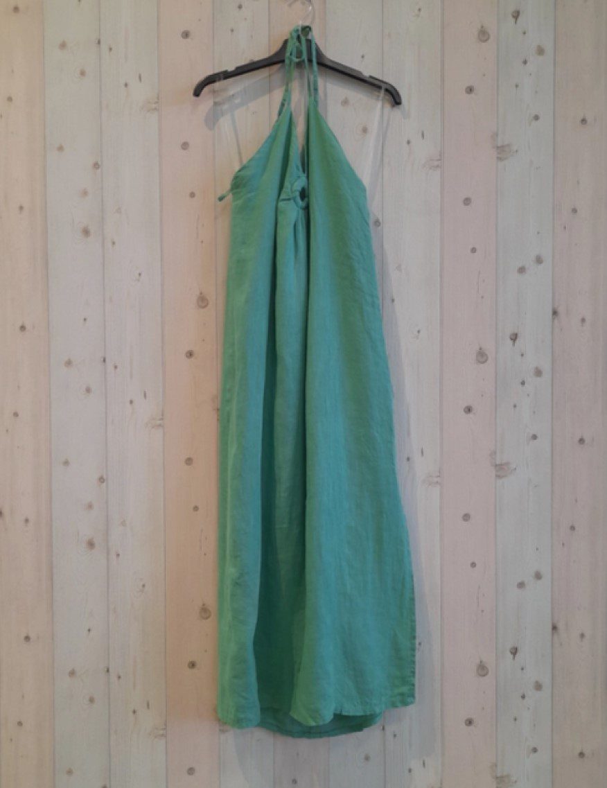 Maxi linnen GROEN jurk – mouwloos met zonder bandjes – halter – knop – maat 38/40