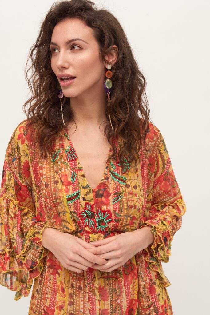 Hammam Linnen blouse – oversized – omarmend – met knoppen – korte mouwen – CAMEL kleur