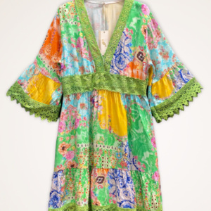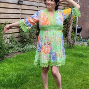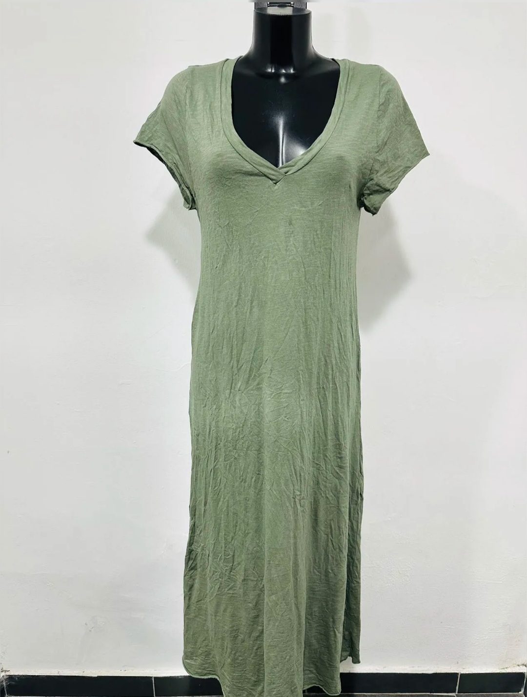 Puur katoen maxi jurk met v-hals – a-lijn – in kleur MILITAIR GROEN – luchtig en moderne zomer jurk maat 36/38
