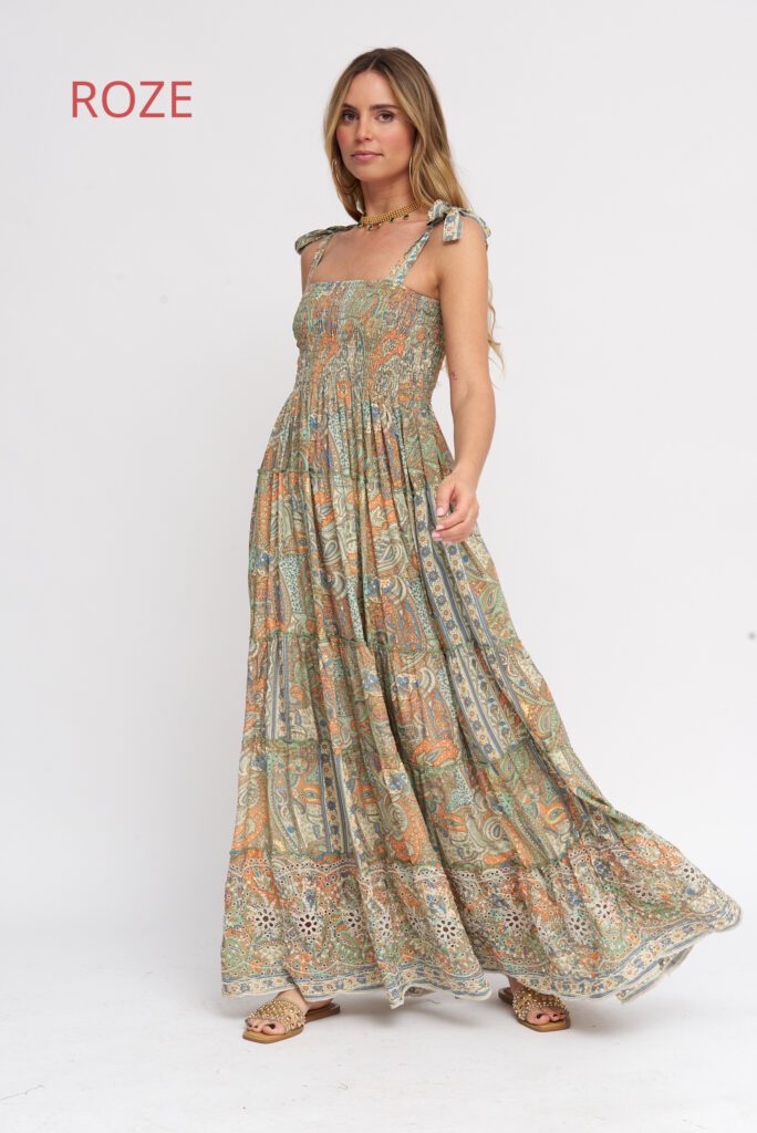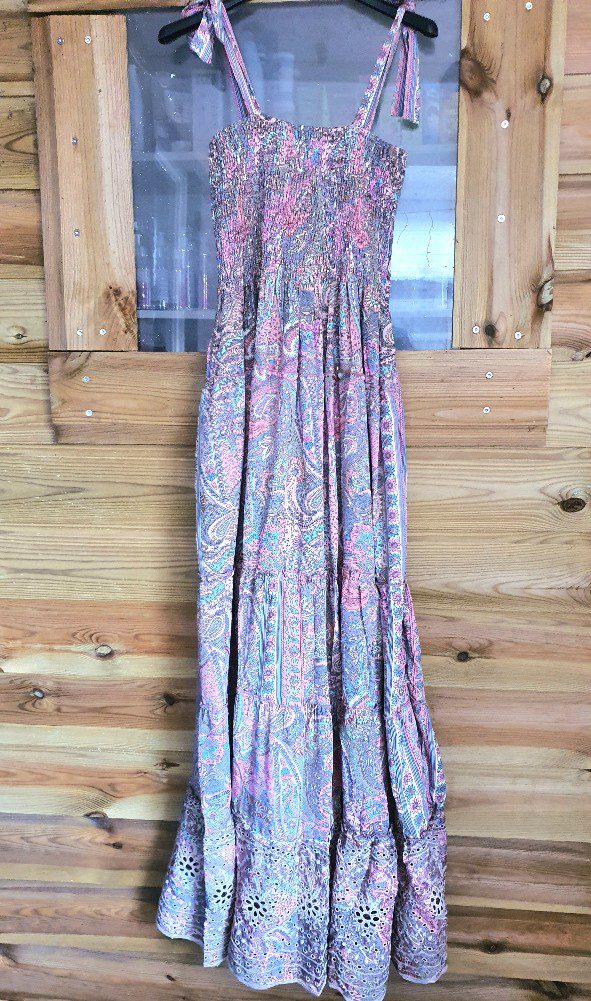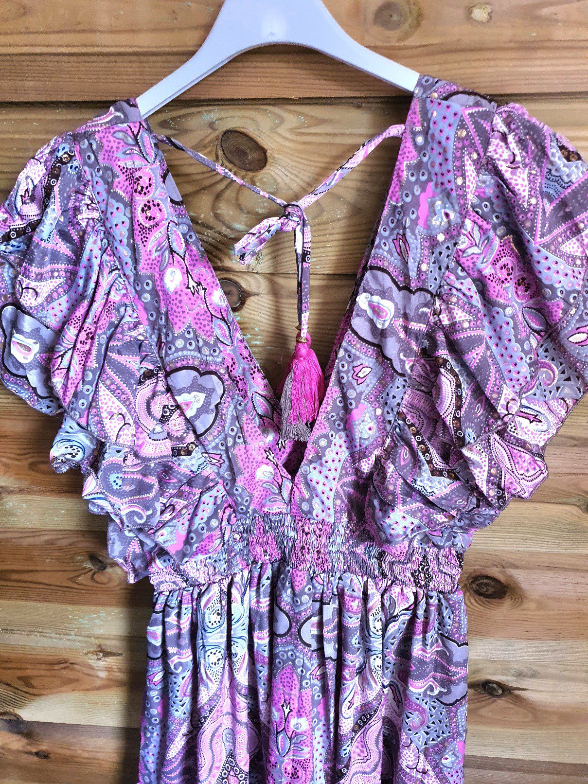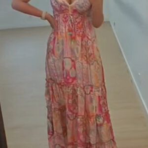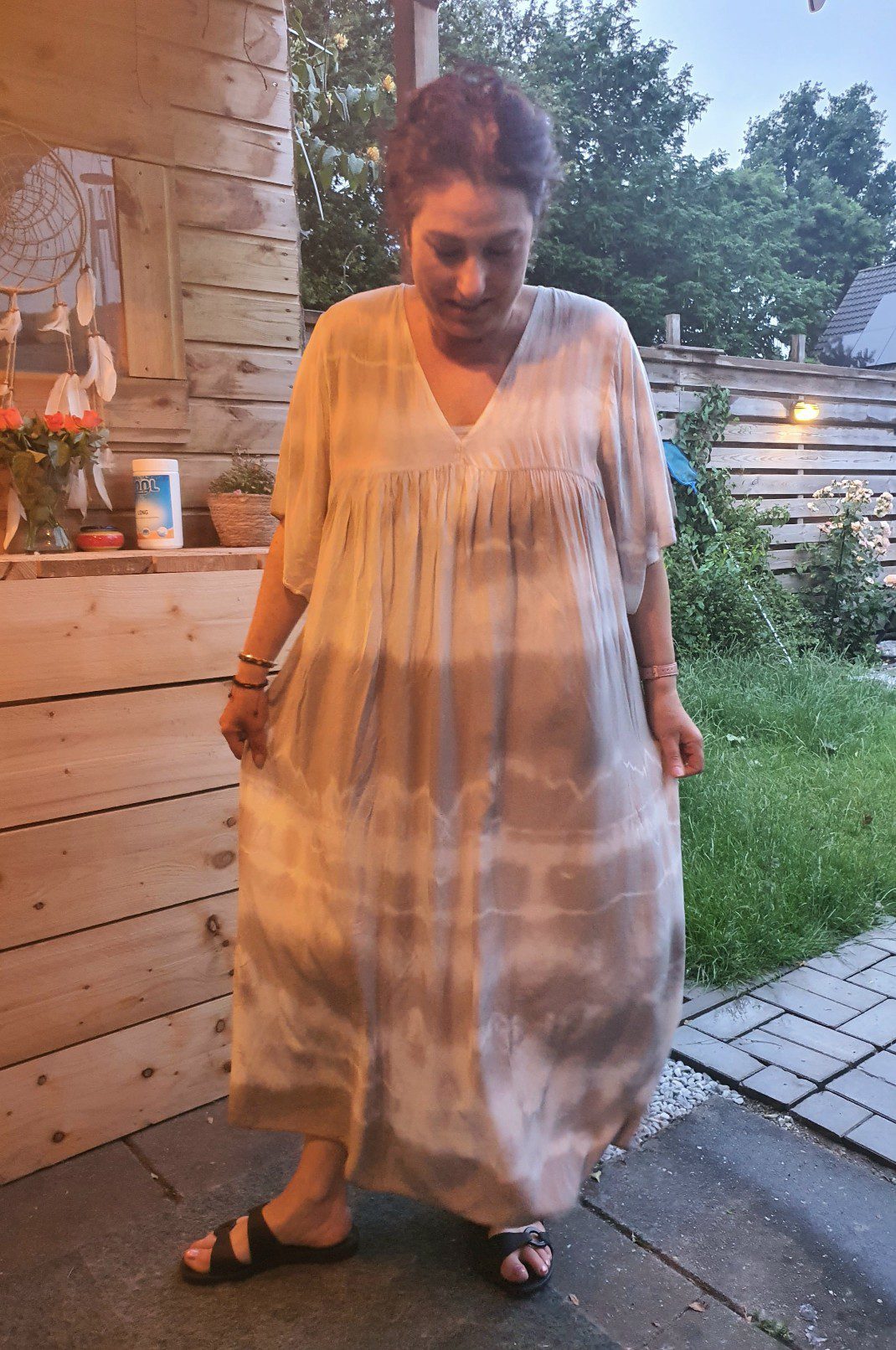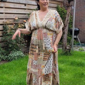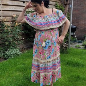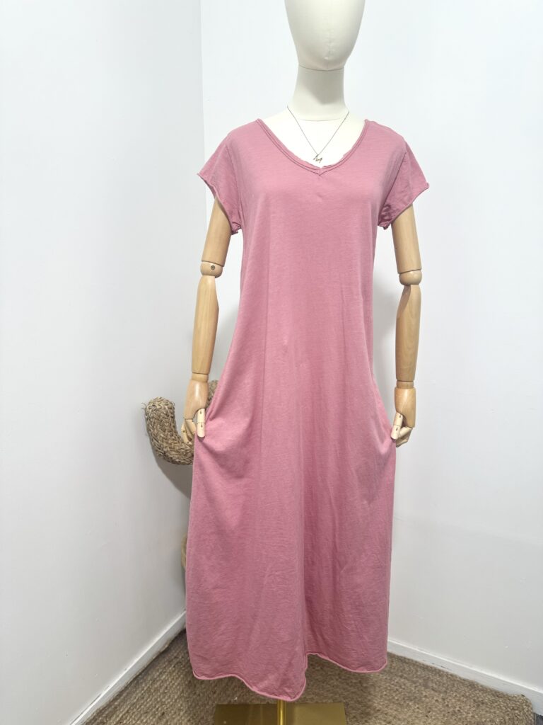 Puur katoen maxi jurk met v-hals – a-lijn – in kleur AS ROZE – luchtig en moderne zomer jurk maat 36
