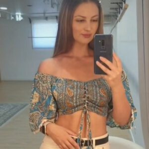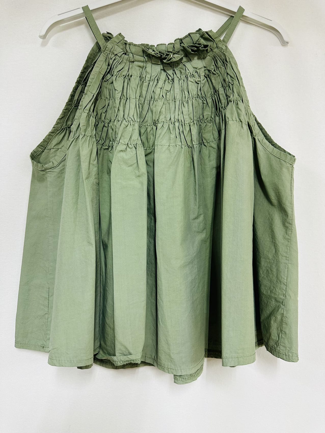 Katoenen zomer spaghetti top – hoge decolleté – cropted top – elastisch – kleur MILITAIR GROEN – maat 38/40
