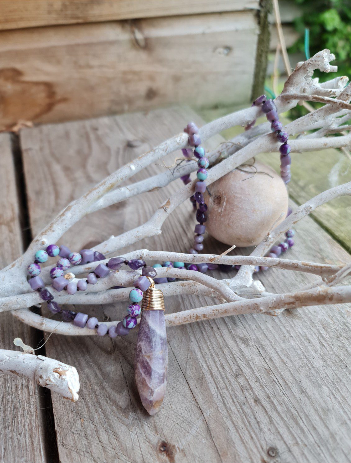 Boho edelsteen lange ketting – kralen ketting PAARS kleur – Amethist