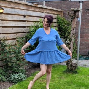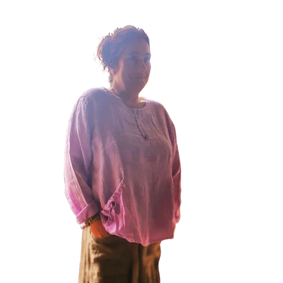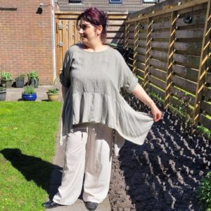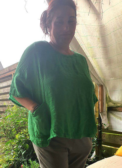 Linnen top met ronde hals – voor zakken – kleur GRASS GROEN – Maat 44/46