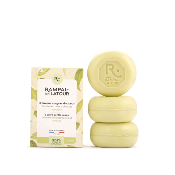 Ontdek de ronde zeepblokken met Verbena-geur: zeep met biologische olijfolie en zoete amandelolie. Vanwege de extra nettoprijs worden er soms wat extra’s in de doos vermeld.