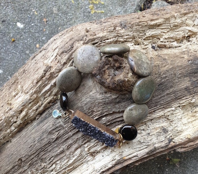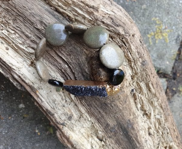Een edelsteen armband van Jaspis en zwarte kristaal