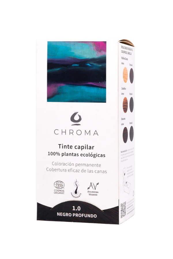Ontdek Chroma’s 100% natuurlijke haarkleur Black 1.0, samengesteld met 100% biologische en Fair Trade planten.