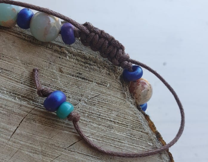 Ronde kralen van Chinese turquoise van 8mm en een kleine elektriek blauw kralen. In de midden is een kwarts in een gouden frame. De sluiting is een Chinese knop
