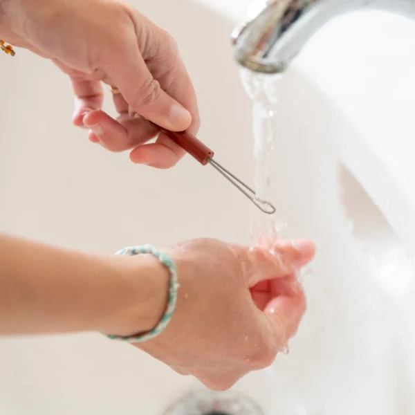 Gemaakt volgens de principes van de circulaire economie, met een handvat van gerecycled afval, is onze oorreiniger zacht in gebruik en gemakkelijk te gebruiken. We hebben gekozen voor roestvrij staal in plaats van hout of plastic omdat het de oren niet irriteert. Zelfs de allerkleinsten zullen genieten van het schoonmaken van hun oren met onze oorreiniger! 🙂