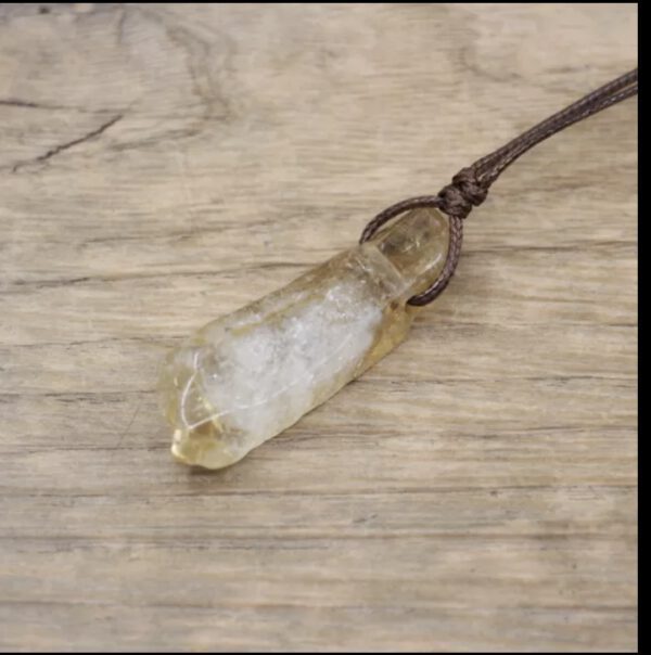 Citrien is een mooi geel transperant kwarts. Hanger is op een katoenen koord, de lengte van de steen ieder ketting is anders