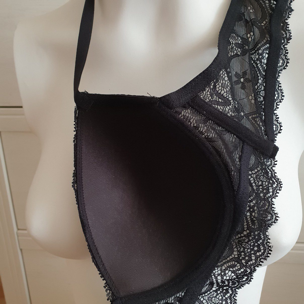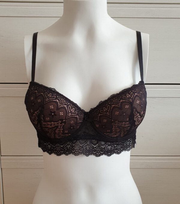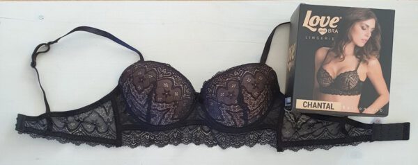 Mooi Italiaanse chique beha van zwarte kant en tan voering. De beha heeft push-up effect. Maakt de borsten sexy