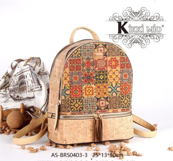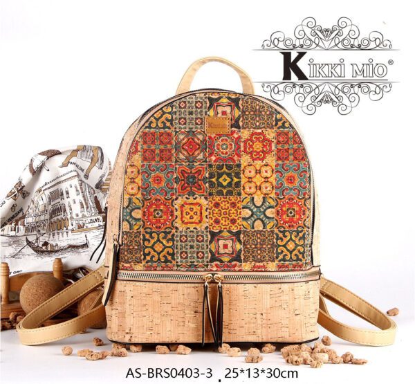 Leuke rugzak van kurk, recycled. Met een harde bodem, 2 kleine voorzakken met ritssluiting, bovenop de rits word helemaal open, met handvatten