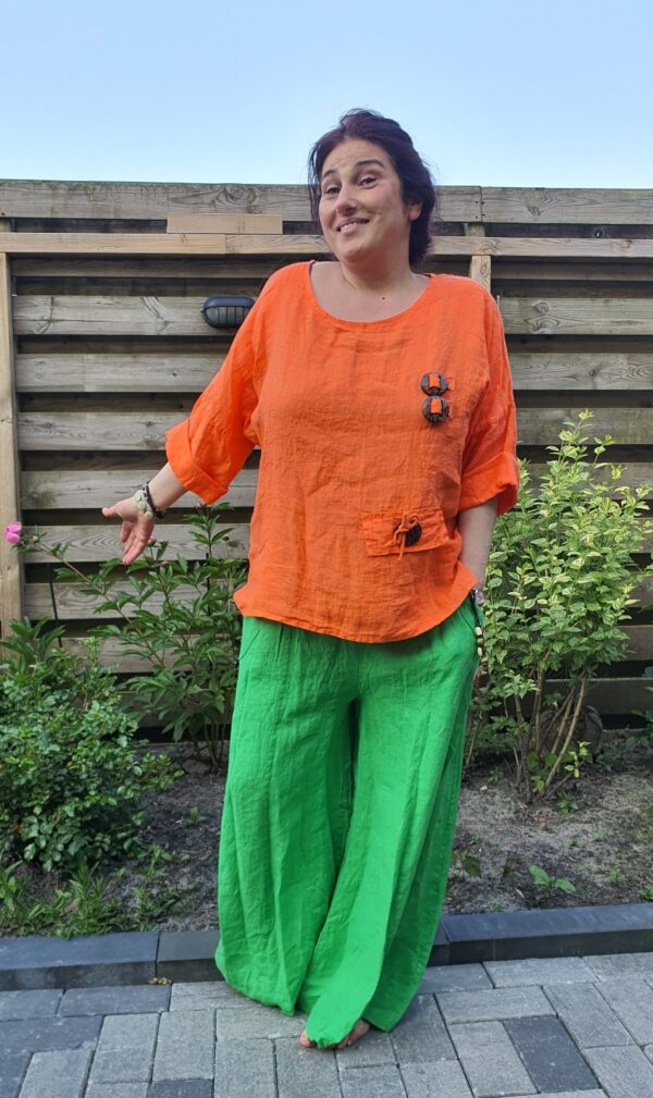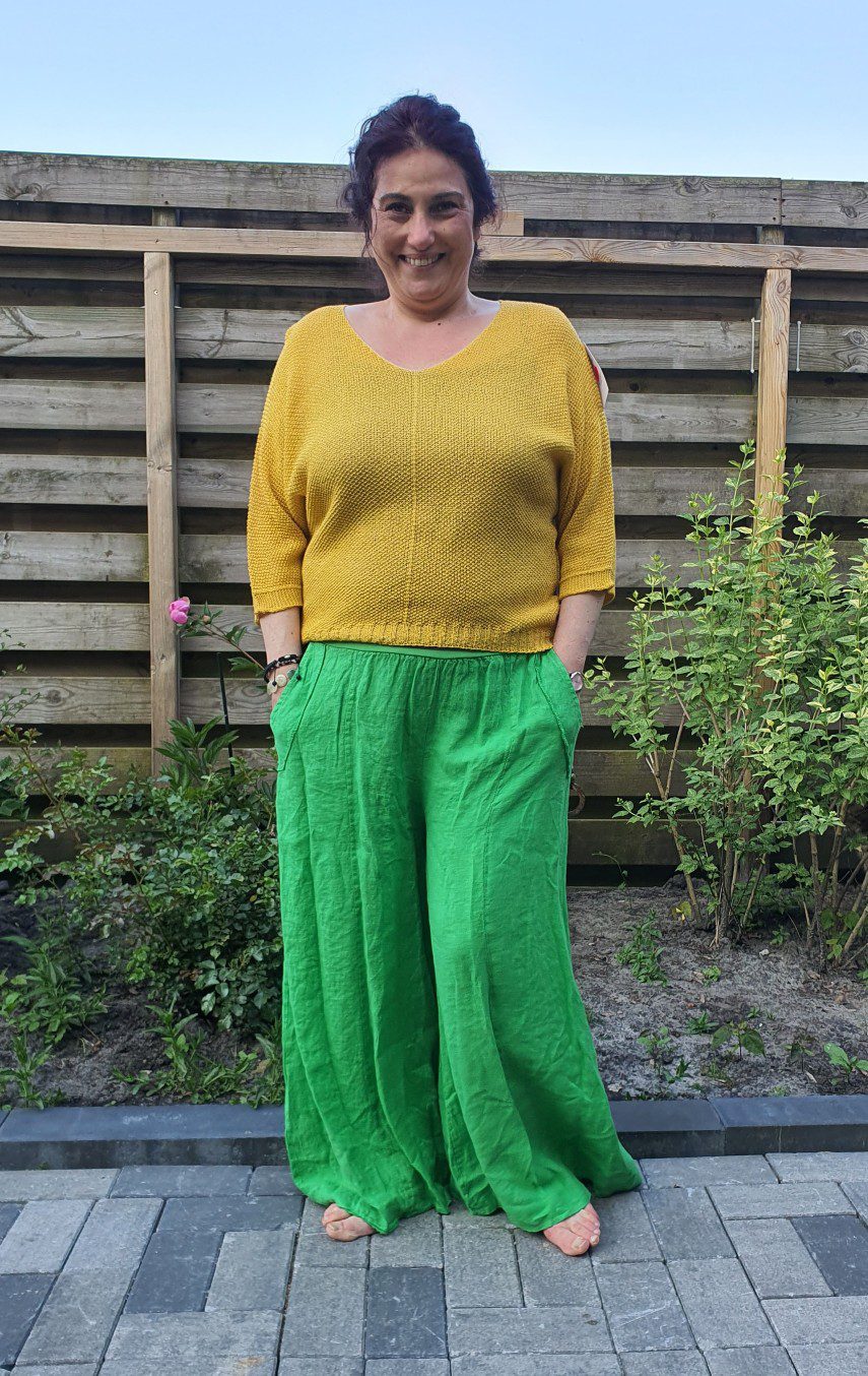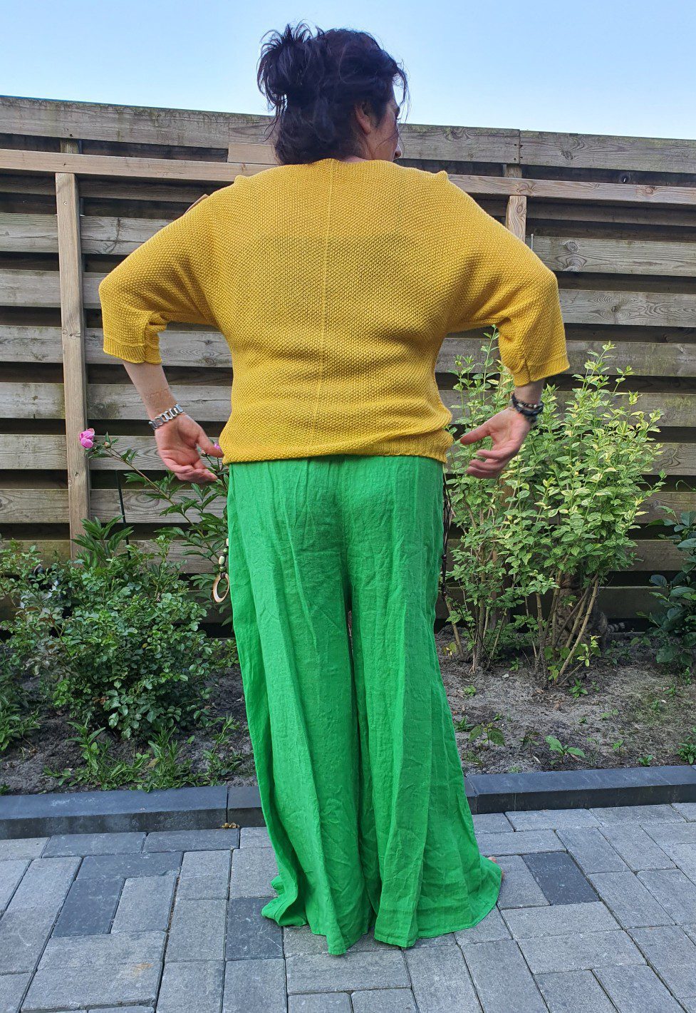 Linnen lange broek met ceintuur en zijzakken GROEN, Maat M/L