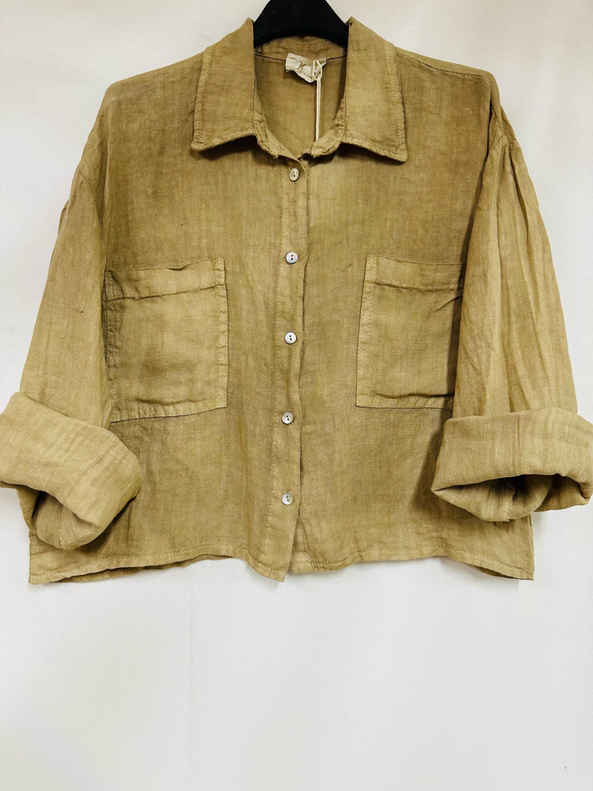 Prachtige korte vest voor de coole zomer avonden of in de voorjaar. Met lange oprollende mouwen, voor zakken. De jasje is geknoopt, mouwen ook