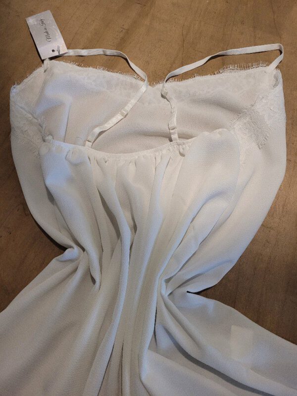 Luchtige top voor de zomer dagen, met kant aan voorkant en elastische band achter, verstelbare bandjes. Op de foto lijkt satijn maar is het niet, zie de fotos