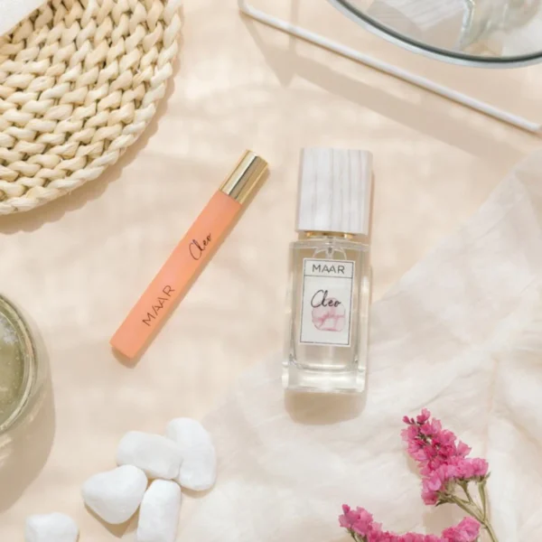 Cleo is een exotische geur geïnspireerd op de roze geranium die langs de Nijldelta in Egypte groeit . De subtiliteit van de vruchten aan de top wordt vermengd met een verfijnd bloemenboeket dat betovert met zijn olfactorische buigingen tussen roos en hout. Het is een fruitig bloemenparfum en is samengesteld uit 6 natuurlijke etherische oliën .