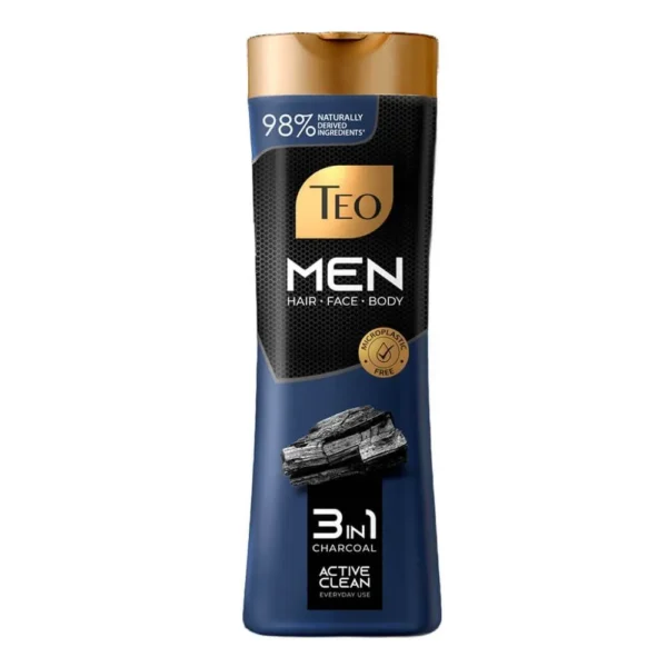 Teo Men Shampoo 3-in-1 Active Clean Herenshampoo 350 ml is een praktisch gecombineerd product dat je niet alleen kunt gebruiken voor het wassen van je haar, maar ook voor je hele lichaam – als een volwaardige douchegel. Een pH-neutrale formule verrijkt met plantenextracten, die een bron van frisheid zijn. Teo Men Active Clean reinigt mild, kalmeert en verzacht de huid en heeft een delicate werking op het haar. Formule met 98% ingrediënten van natuurlijke oorsprong*, zonder microplastics en 100% recyclebare verpakkingen.