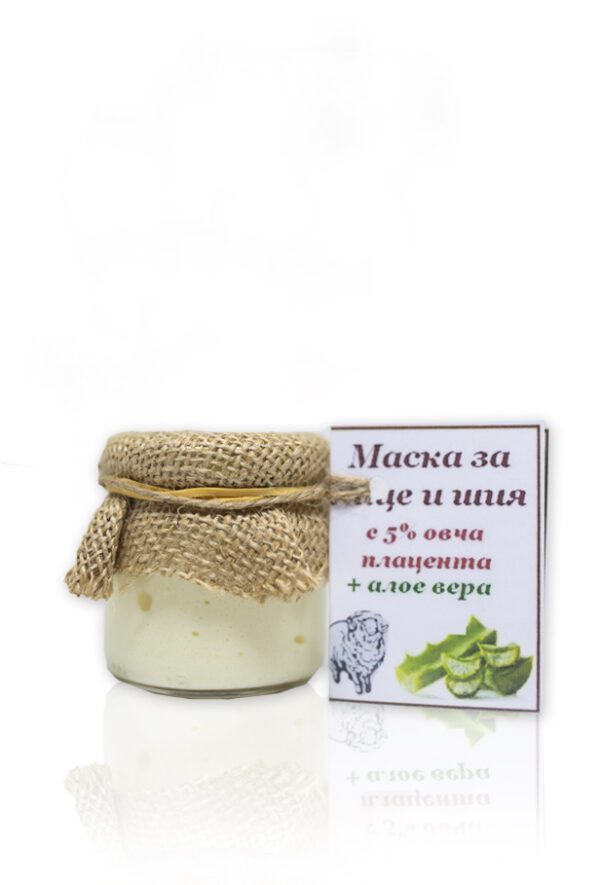 Gezichts- en halsmasker met 5% schapenplacenta-extracten , aloë vera, lycopeen en vitamines A, E en B5